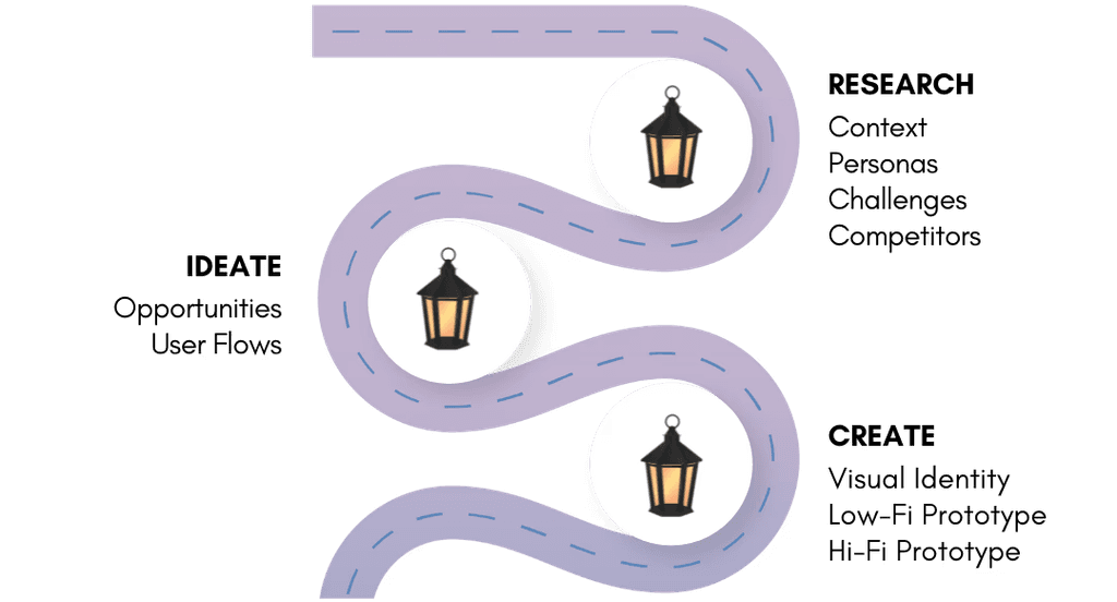 Lantern is a concept for a step-by-step visual guide extension to help people navigate digital tools with ease. We didn't have time to conduct in-depth user interviews as this was for a 48 hour designathon, during a school week but we leaned on secondary research, personal experiences, teaching tech to others, and rapid feedback to inform our decisions.